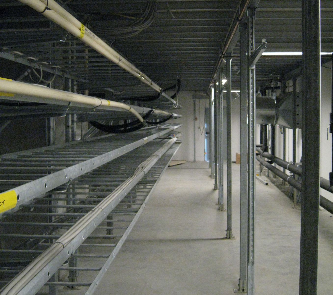 Las bandejas de cables, tuberías y otras utilidades debajo del suelo pueden ser soportadas directamente por la subestructura del suelo para evitar usar otros sistemas de soporte separados por debajo del suelo técnico.